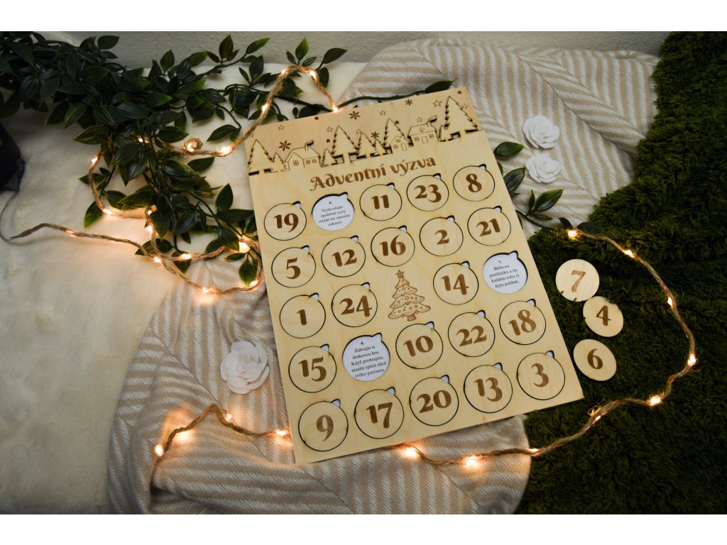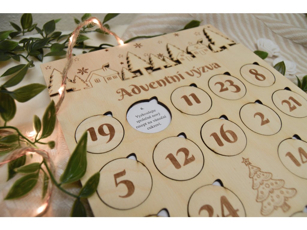 Dřevěný adventní kalendář s úkoly pro páry