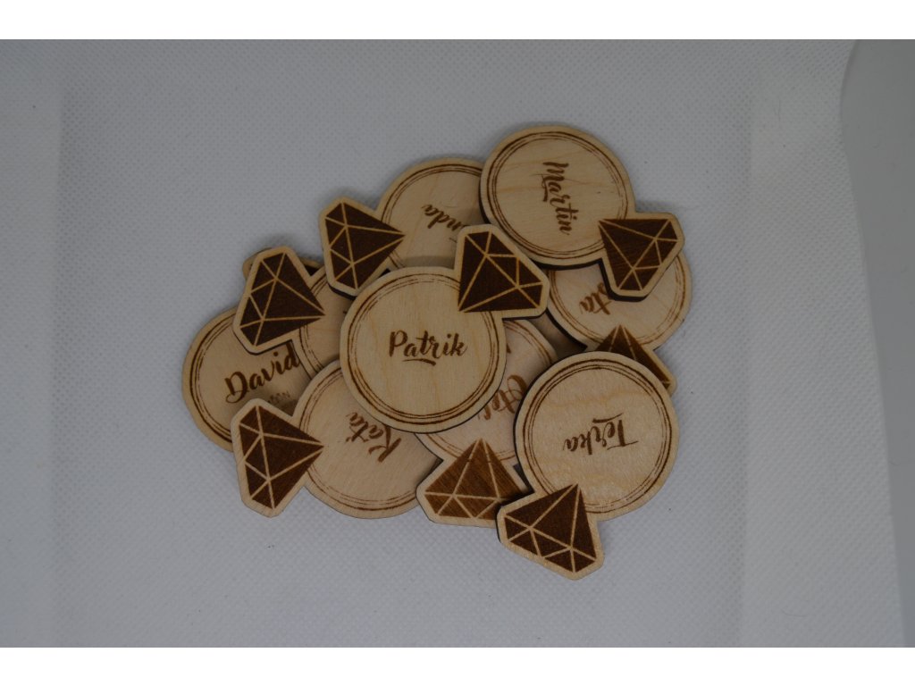 Dodejte své svatbě osobní nádech s našimi personalizovanými dřevěnými jmenovkami. Každá jmenovka je vyrobená z dřevěné překližky a přizpůsobená přesně podle vašich představ – můžete si vybrat z našich originálních tvarů nebo si vytvořit vlastní. V nabídce máme jmenovky ve tvaru puzzlíku, které symbolizují, že do sebe skvěle zapadáte, nebo ve tvaru prstenu, což krásně odkazuje na svatební slib.