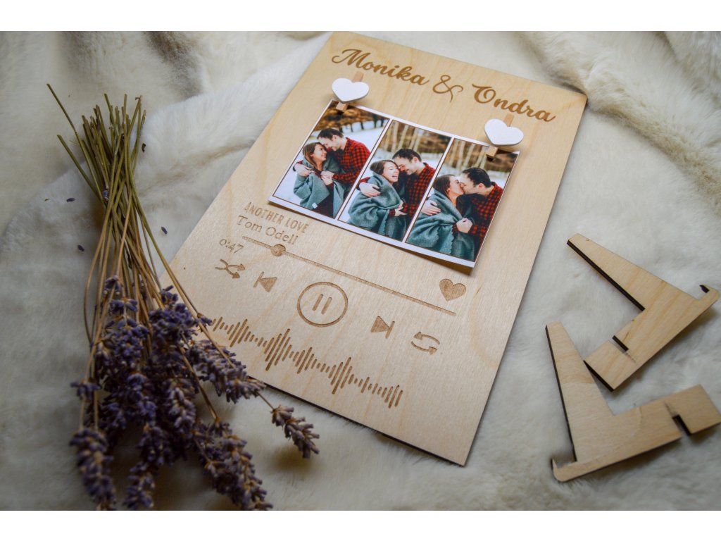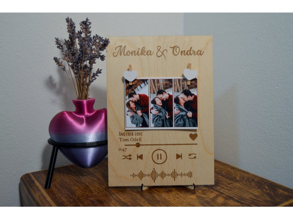 Tento držák na fotografii je nejen krásný, ale také originální. Stačí nám zaslat jména, název skladby a třeba i čas oblíbené pasáže a my vytvoříme personalizovaný kousek, který rozněžní každé srdce.