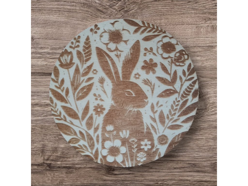 Dřevěný tácek s motivem zajíčka – Roztomilý detail na váš stůl 🐰